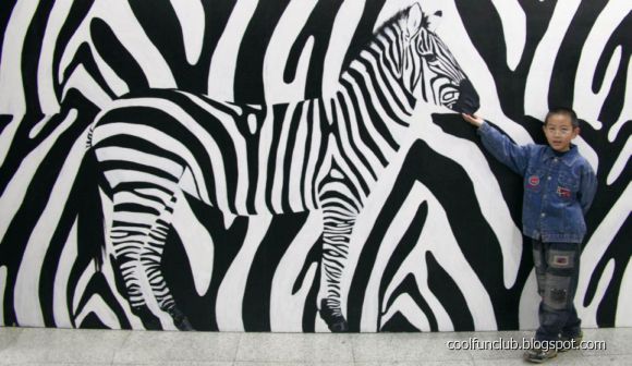 You can tell from the smile on this art lover's face that she isn't really in any danger from the pouncing lion that appears within striking distance of her. And the fact that the lion is leaping from a red wardrobe, inspired by the Chronicles of Narnia, tells you something fantastical is occurring in the art world.As 'realistic' as it may look, this incredible painting is simply part of a new exhibition of four dimensional art in North East China. More pics after the break.......